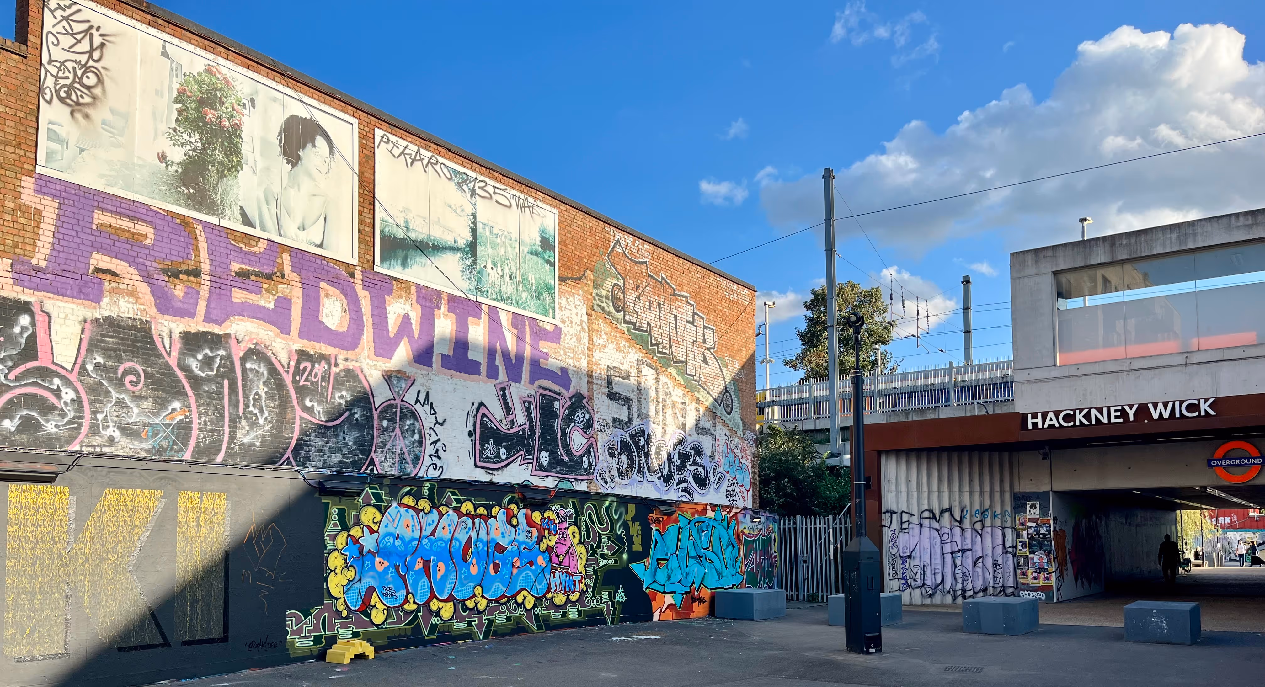 - Hackney Wick is famous for its ever-changing street art. The area is basically an open gallery with huge murals, graffiti and installations by local and international artists everywhere. Some of the most iconic murals can be found near Hackney Wick Station, along Wallis Road, White Post Lane and Rothbury Road;